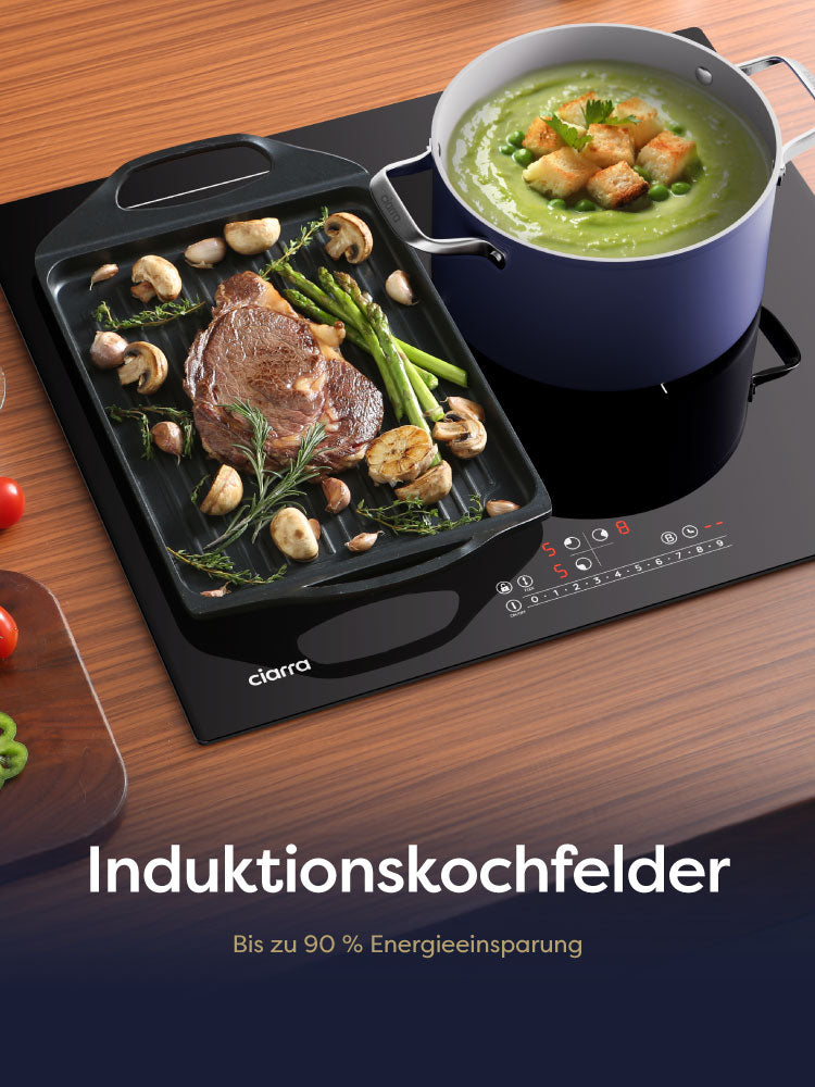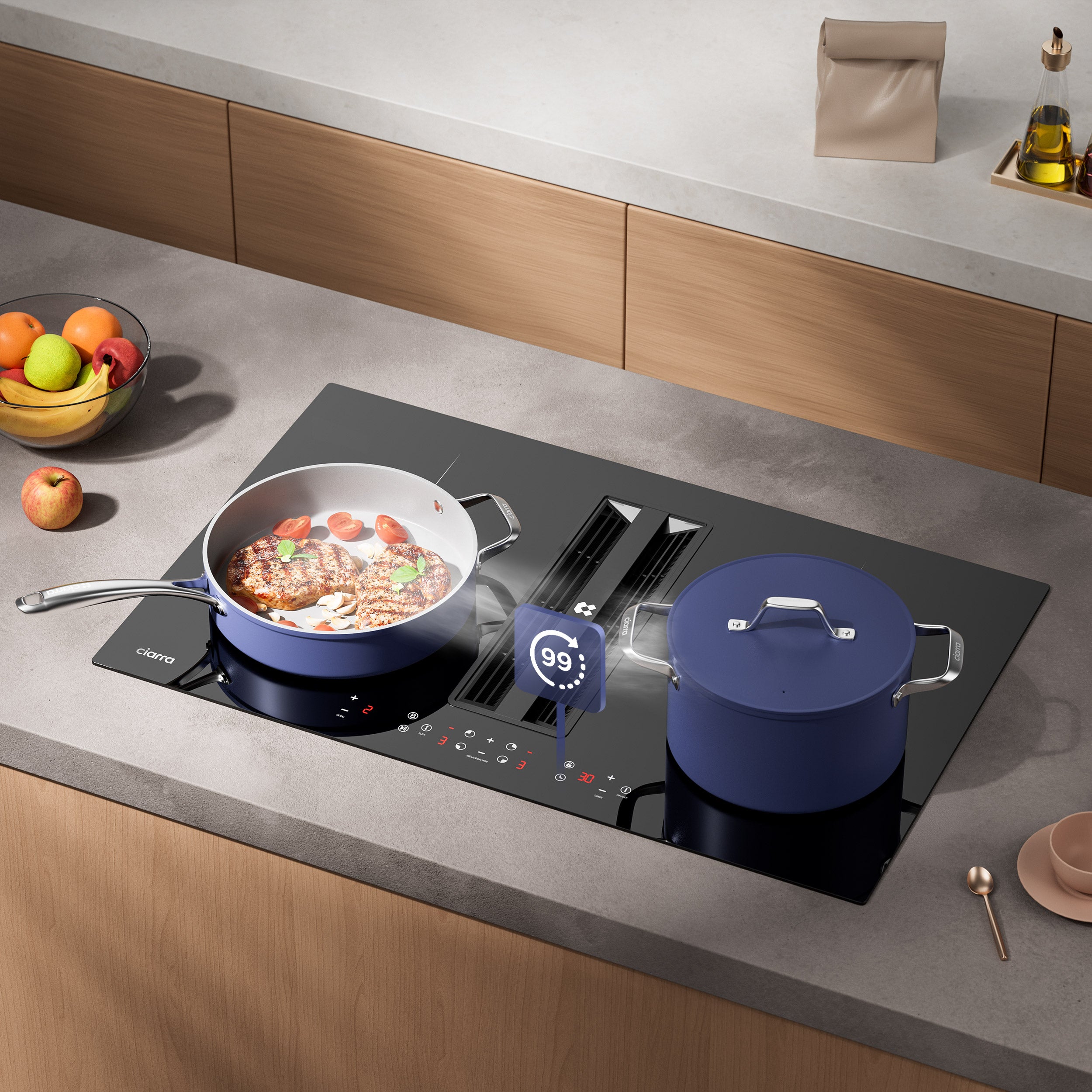 Ich bin vor Kurzem auf das Ciarra One Dunstabzugs-Induktionskochfeld umgestiegen und habe es mit meinem Ciarra Beyond-Kochgeschirr kombiniert und so meine Kochkünste auf ein neues Niveau gehoben. Dieses All-in-One-Kochfeld mit integriertem Dunstabzug ist nicht nur elegant und platzsparend, sondern auch unglaublich effizient.