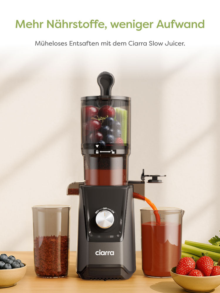 Super einfach zu bedienen und zu reinigen! Der Saft schmeckt total frisch – mein Kind war begeistert vom Erdbeer-Apfel-Mix. Absolute Empfehlung!