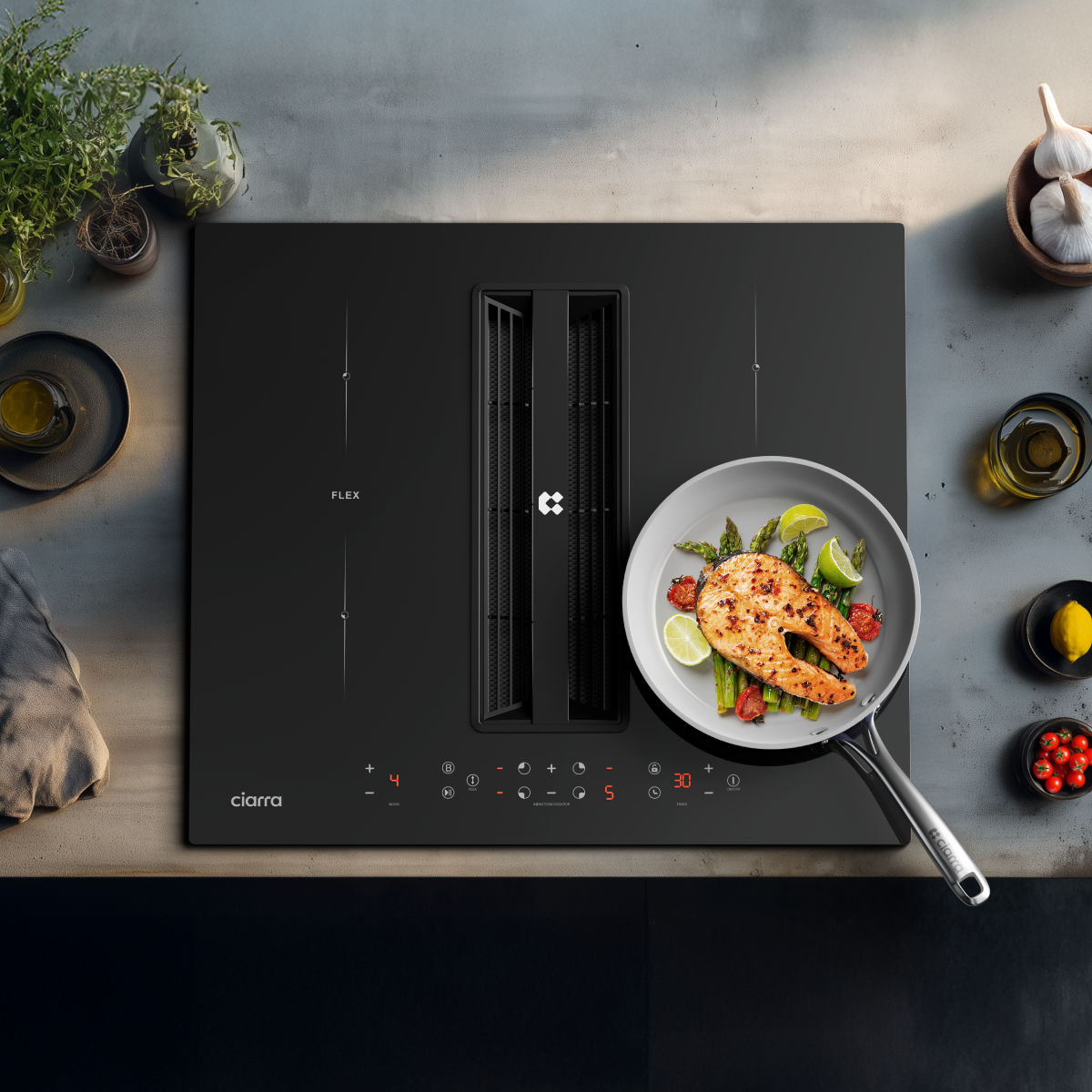 Ich bin vor Kurzem auf das Ciarra One Dunstabzugs-Induktionskochfeld umgestiegen und habe es mit meinem Ciarra Beyond-Kochgeschirr kombiniert und so meine Kochkünste auf ein neues Niveau gehoben. Dieses All-in-One-Kochfeld mit integriertem Dunstabzug ist nicht nur elegant und platzsparend, sondern auch unglaublich effizient.