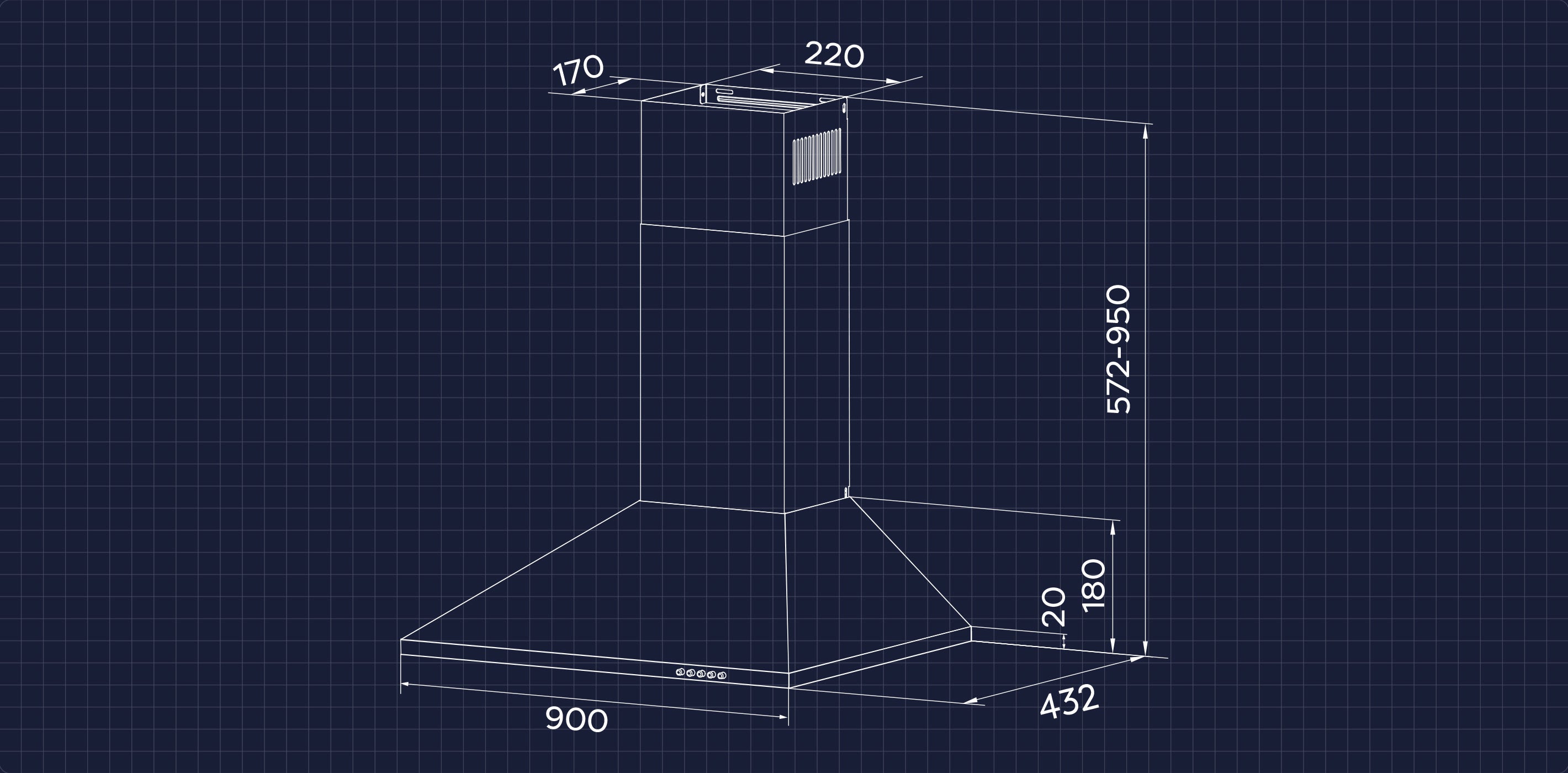 - 90cm Pyramiden-Dunstabzugshaube, 370m³/h