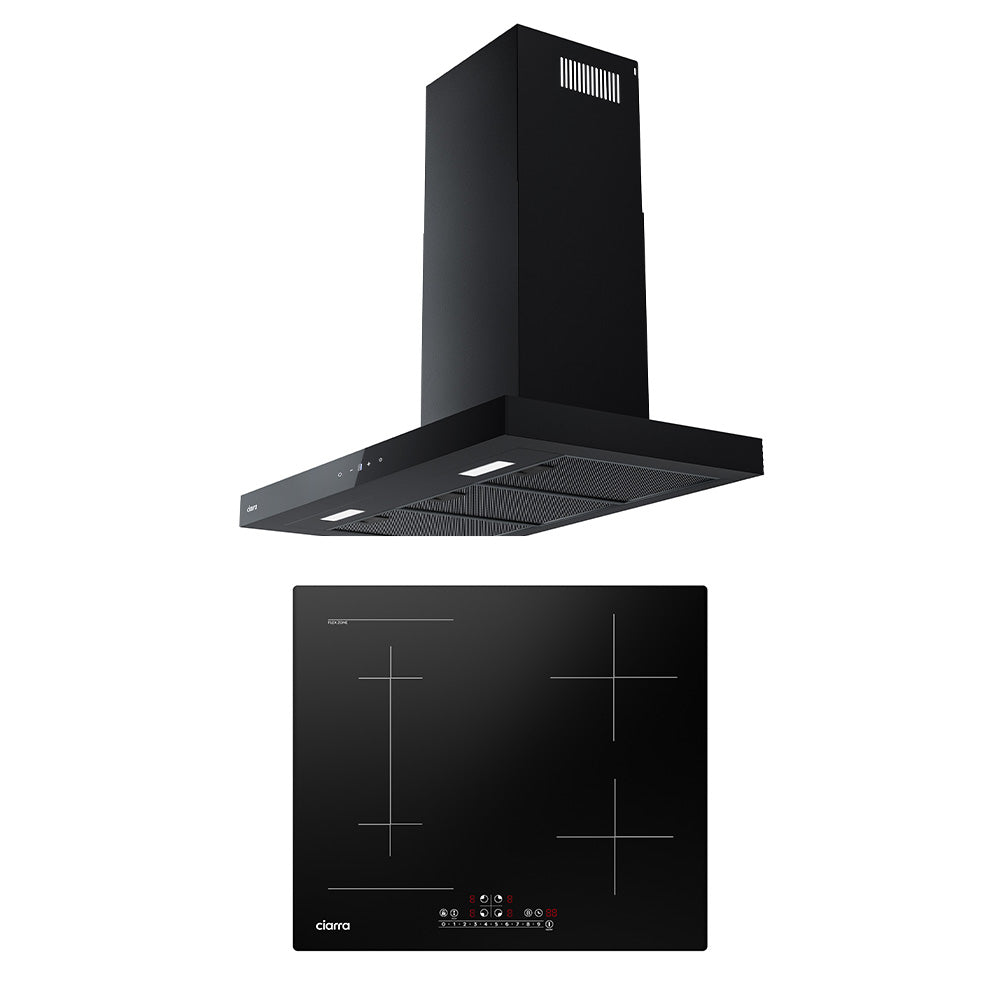 Ciarra Powerful-Set: 90cm Wandhaube + 60cm Induktionskochfeld 4 Zonen