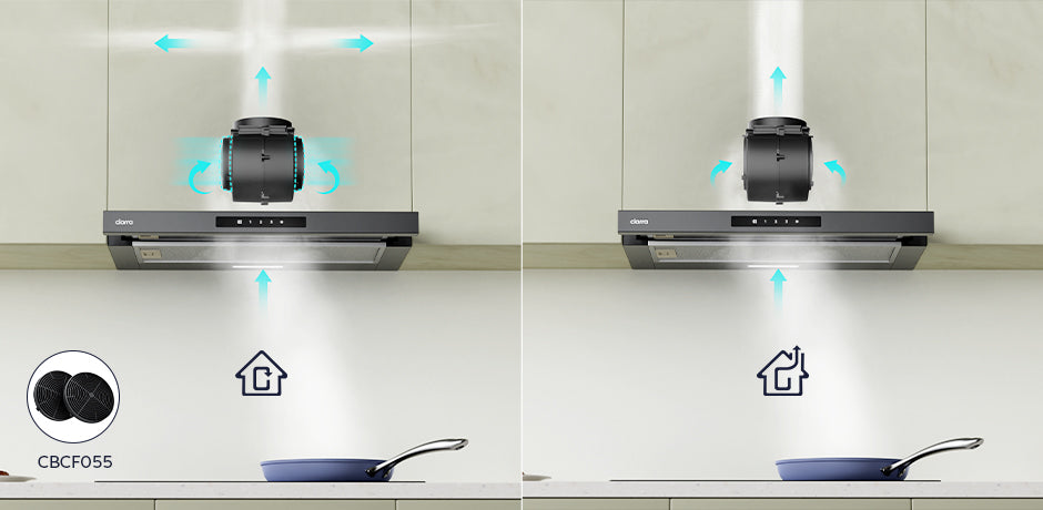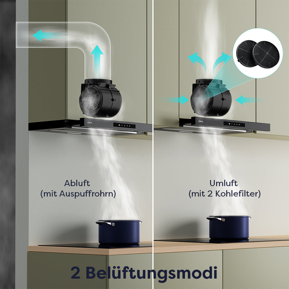 - Umluft- oder Abluftbetrieb mit Aktivkohlefilter CBCF055-OW