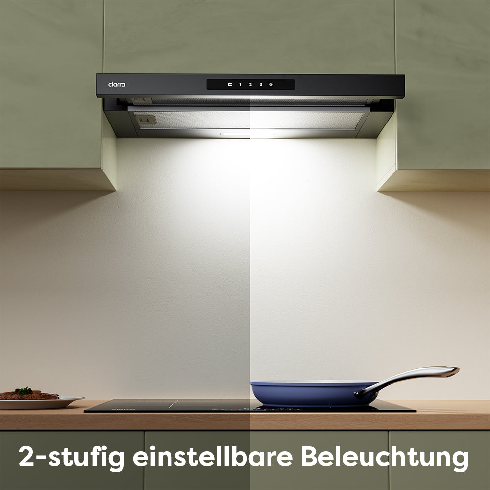 Ciarra 60cm Flachschirmhaube Einbau-Dunstabzugshaube ausziehbar Klasse A+, Touch, LED-Beleuchtung CBCB6909A-OW