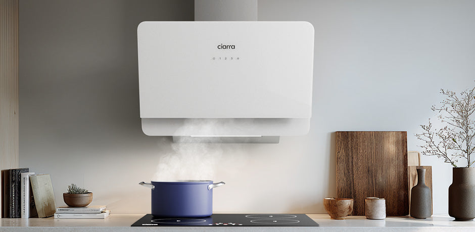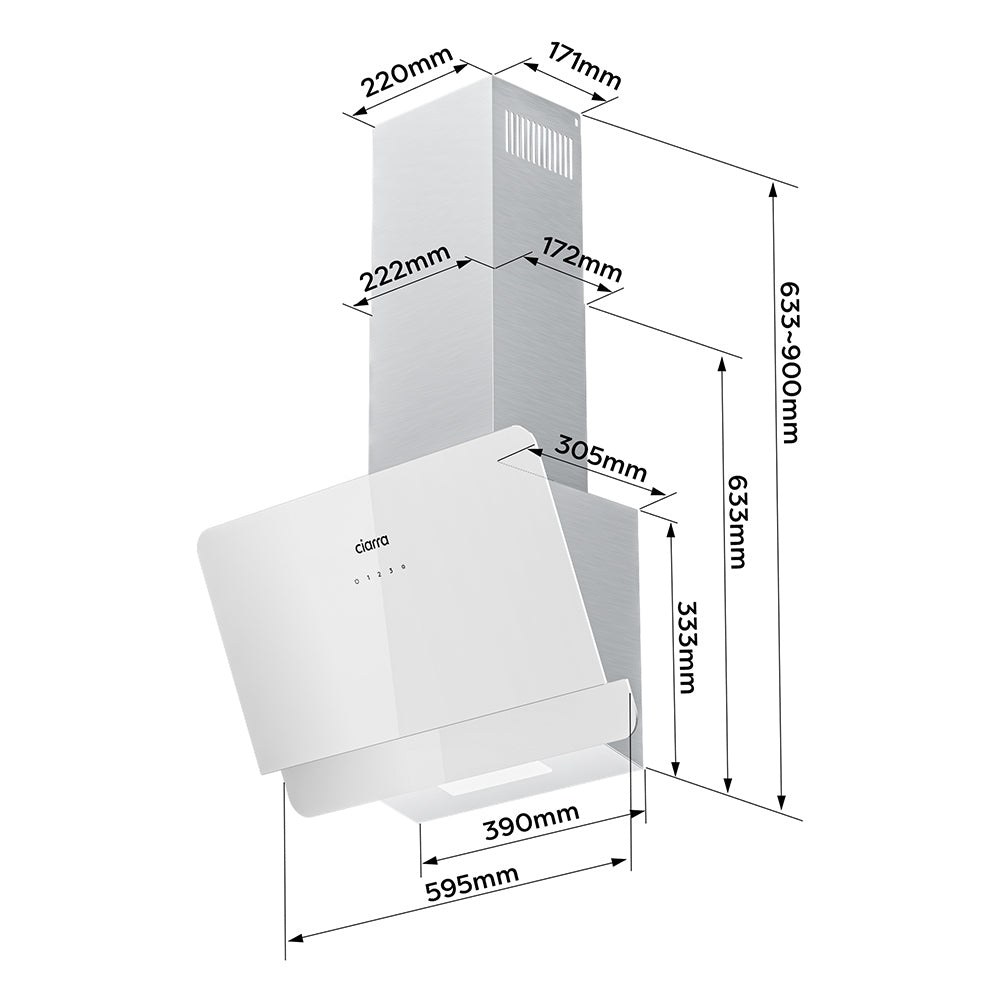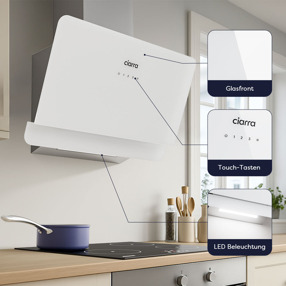 Ciarra 60cm Schräghaube Wandmontage mit Touch-Bedienung & LED-Beleuchtung Weiß CBCS6765C-OW