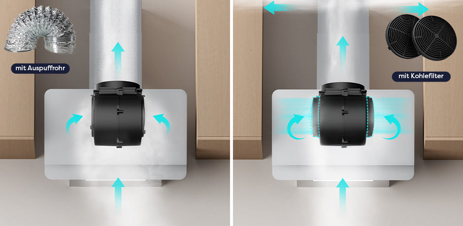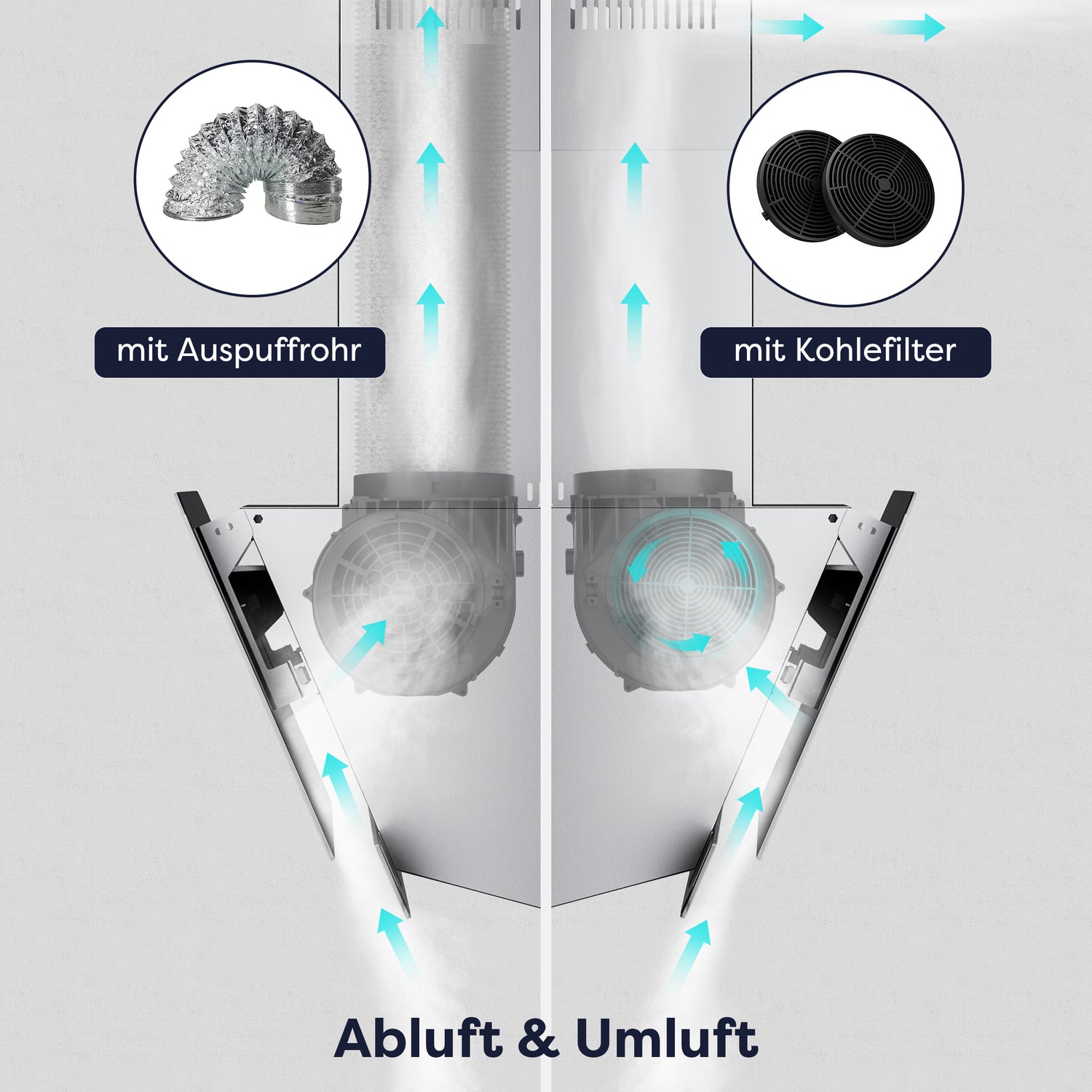 - Umluft- & Abluftbetrieb: Flexibler Einsatz mit Abluftrohr oder Aktivkohlefilter (CBCF055 inklusive).