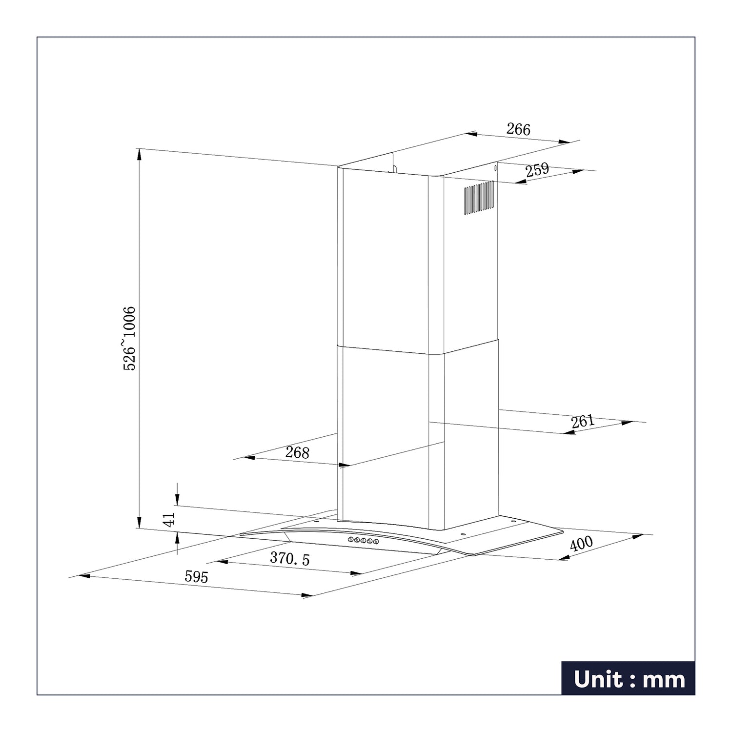 CIARRA Dunstabzugshaube aus Glas gebogene Form 60cm CBCB6506B-OW