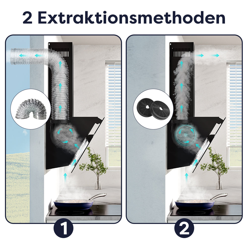 • 🛠️ Vielseitige Installation: Flexibel einsetzbar als Abluft- oder Umlufthaube. Die passenden Aktivkohlefilter für den Umluftbetrieb sind im Lieferumfang enthalten – die ideale Lösung für jede Küchenplanung.