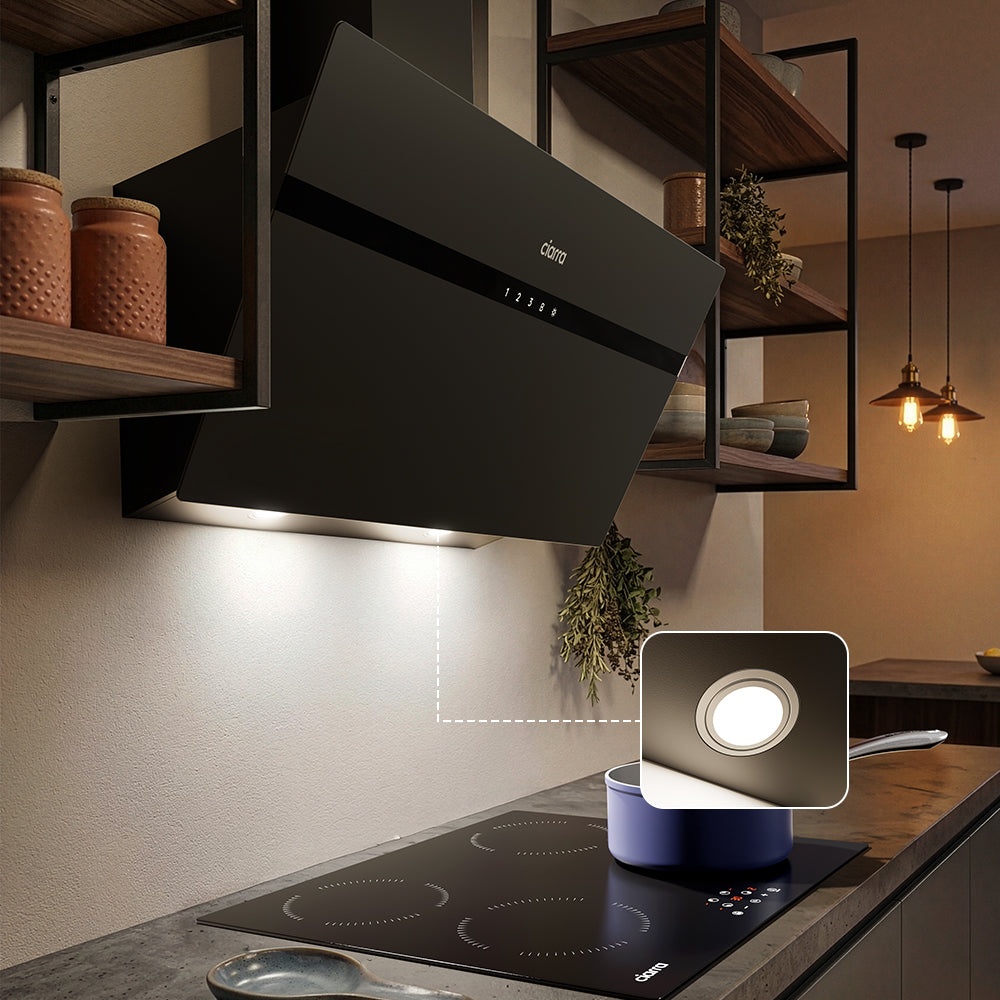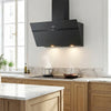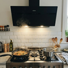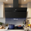 • ✨ Edles Design aus mattem Glas: Die 90 cm schräge Kopffreihaube bietet maximale Bewegungsfreiheit beim Kochen. Die hochwertige Anti-Fingerprint-Beschichtung auf dem schwarzen Mattglas ist resistent gegen Verschmutzungen und besonders pflegeleicht.