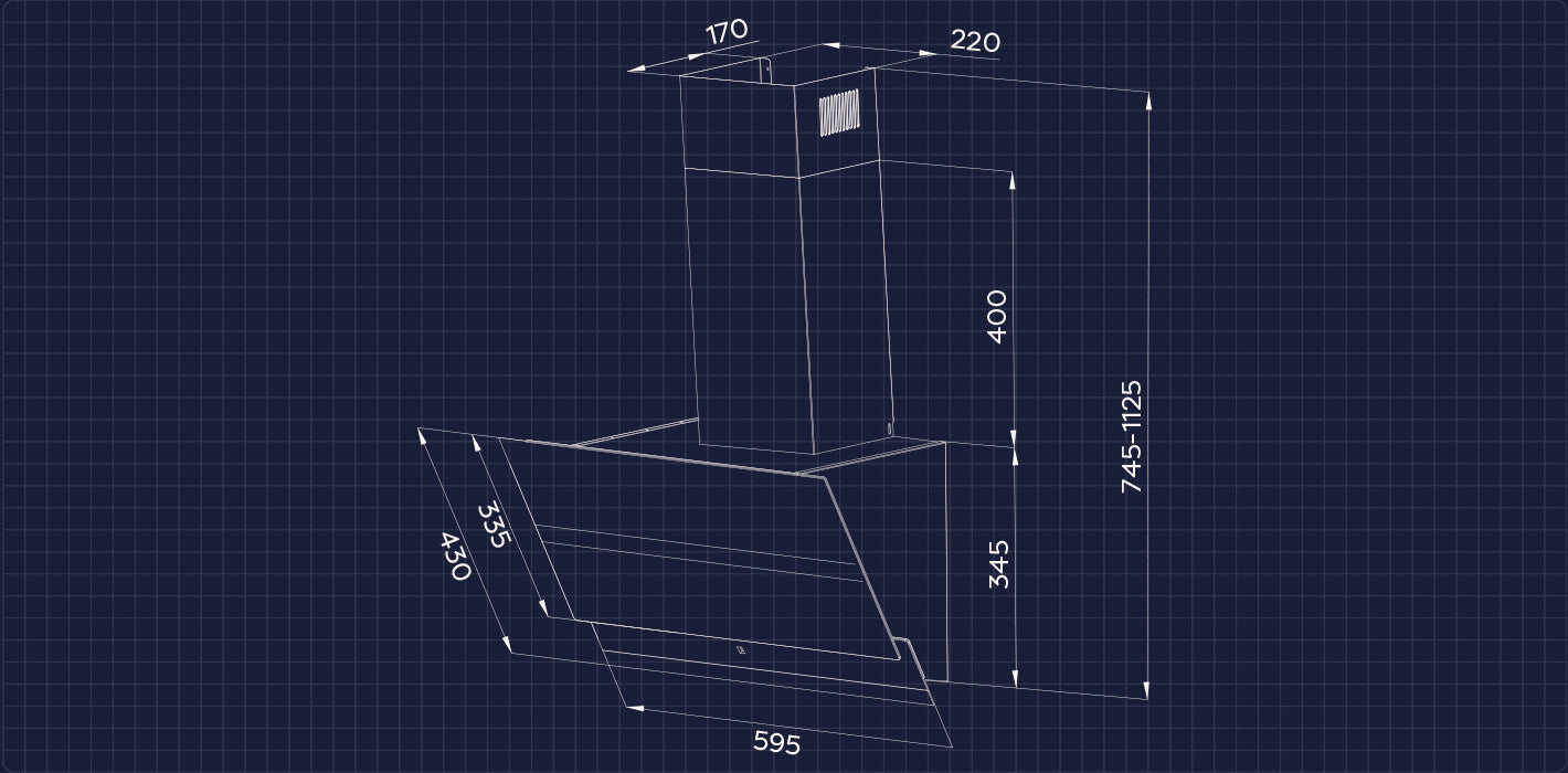 - 60cm Edelstahl Glas Schräghaube, 650m³/h