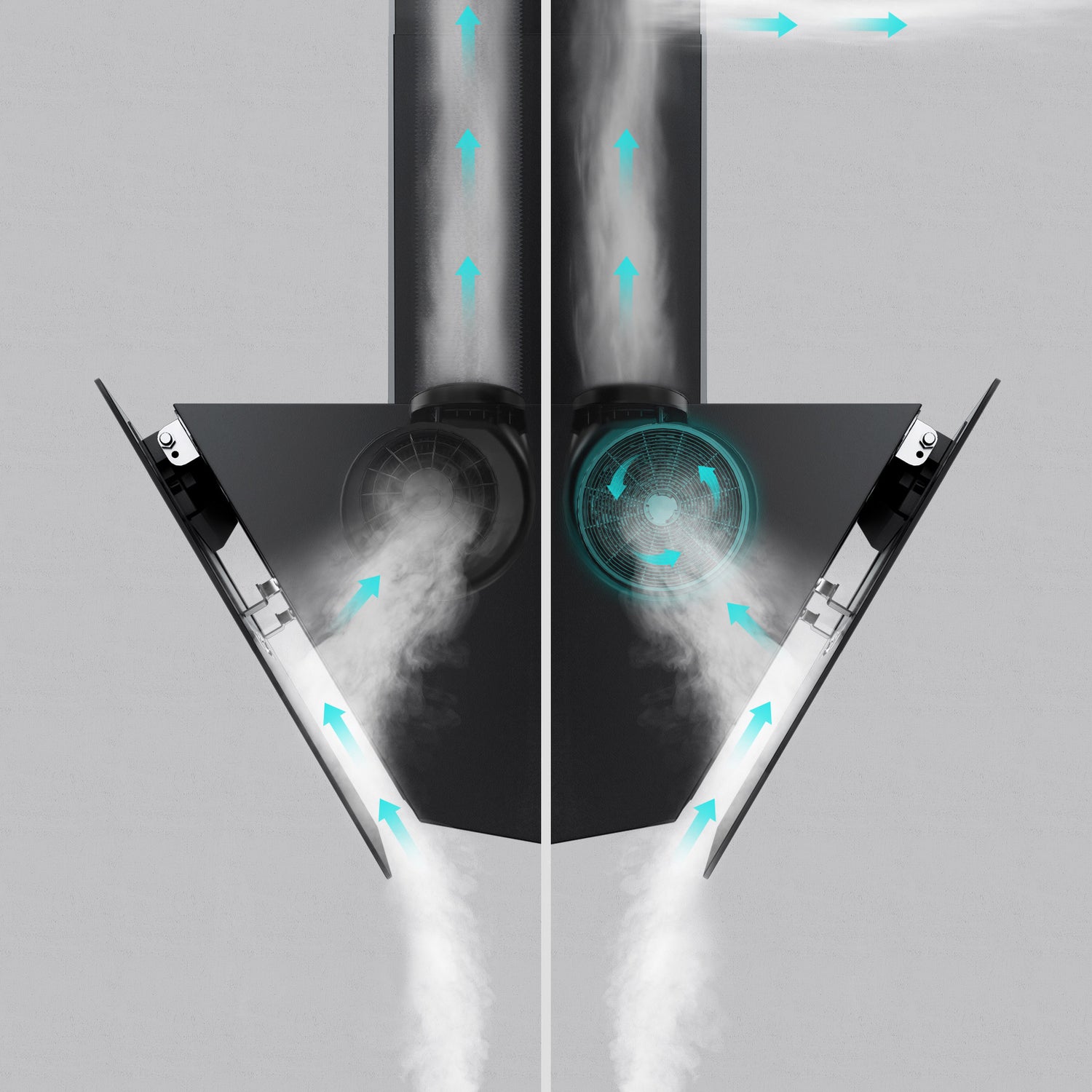 - 60cm Edelstahl Glas Schräghaube,650m³/h
