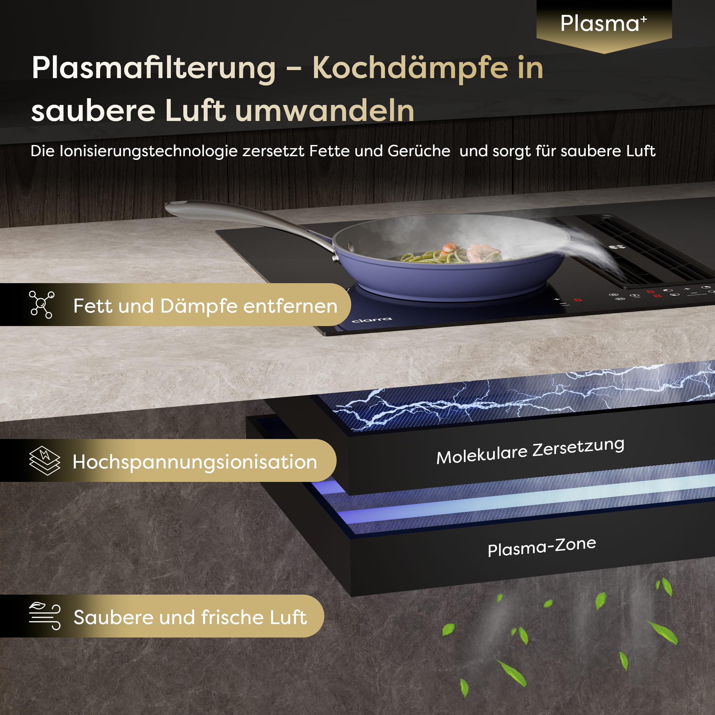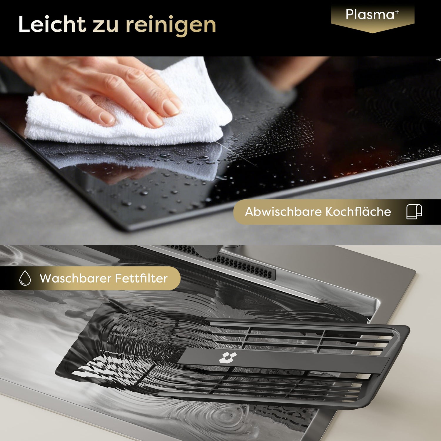 Können Sie sich vorstellen, wie Hightech in ein superschlankes Gehäuse mit einer starken Seele integriert wird? Wir wissen, dass eine Dunstabzugshaube manchmal nicht ausreicht, um alle schlechten Gerüche loszuwerden, aber wir haben für Sie unser hochmodernes Plasma⁺-System entwickelt, das nicht nur Gerüche, sondern auch Bakterien und Keime beseitigt.