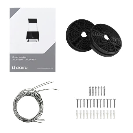 Ciarra Smart Island Dunstabzugshaube wird mit den folgenden Artikeln in der Box geliefert: