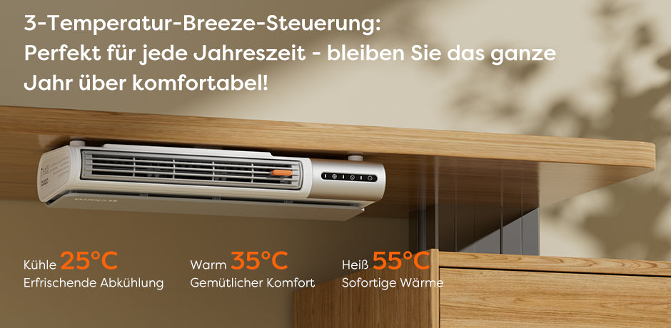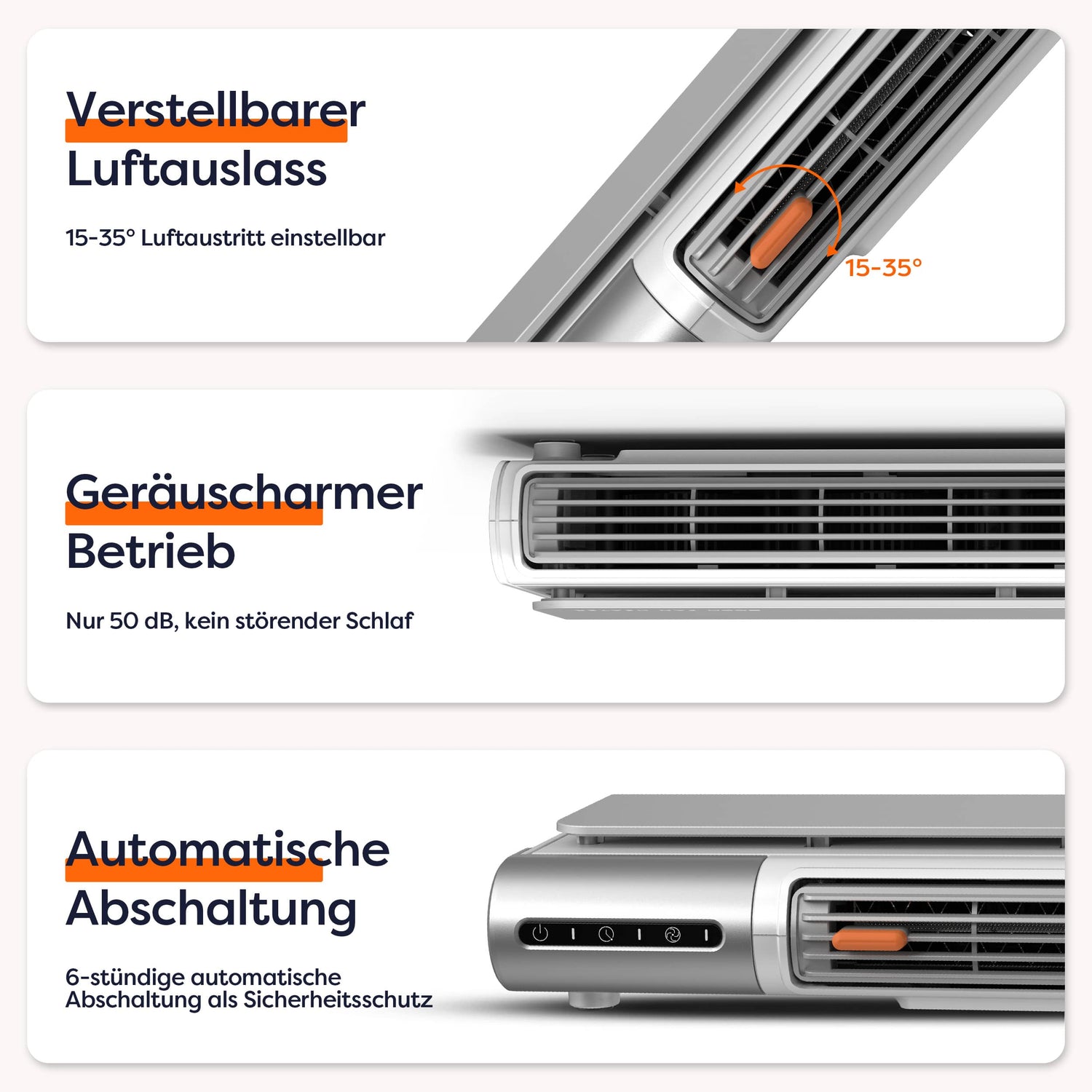 | Gebläsestufen | 3-stufig einstellbar: Stufe 1 (Kühlmodus): 15W Stufe 2 (Niedrige Heizstufe): 370W Stufe 3 (Hohe Heizstufe): 400W |