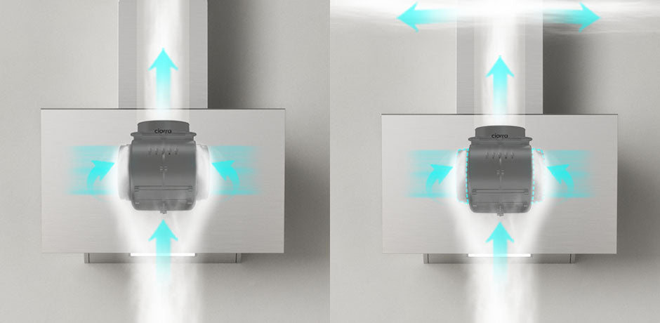 - 2 Betriebsmodi – Umluftmodus (Aktivkohlefilter) oder Abluftmodus (flexible Installation).