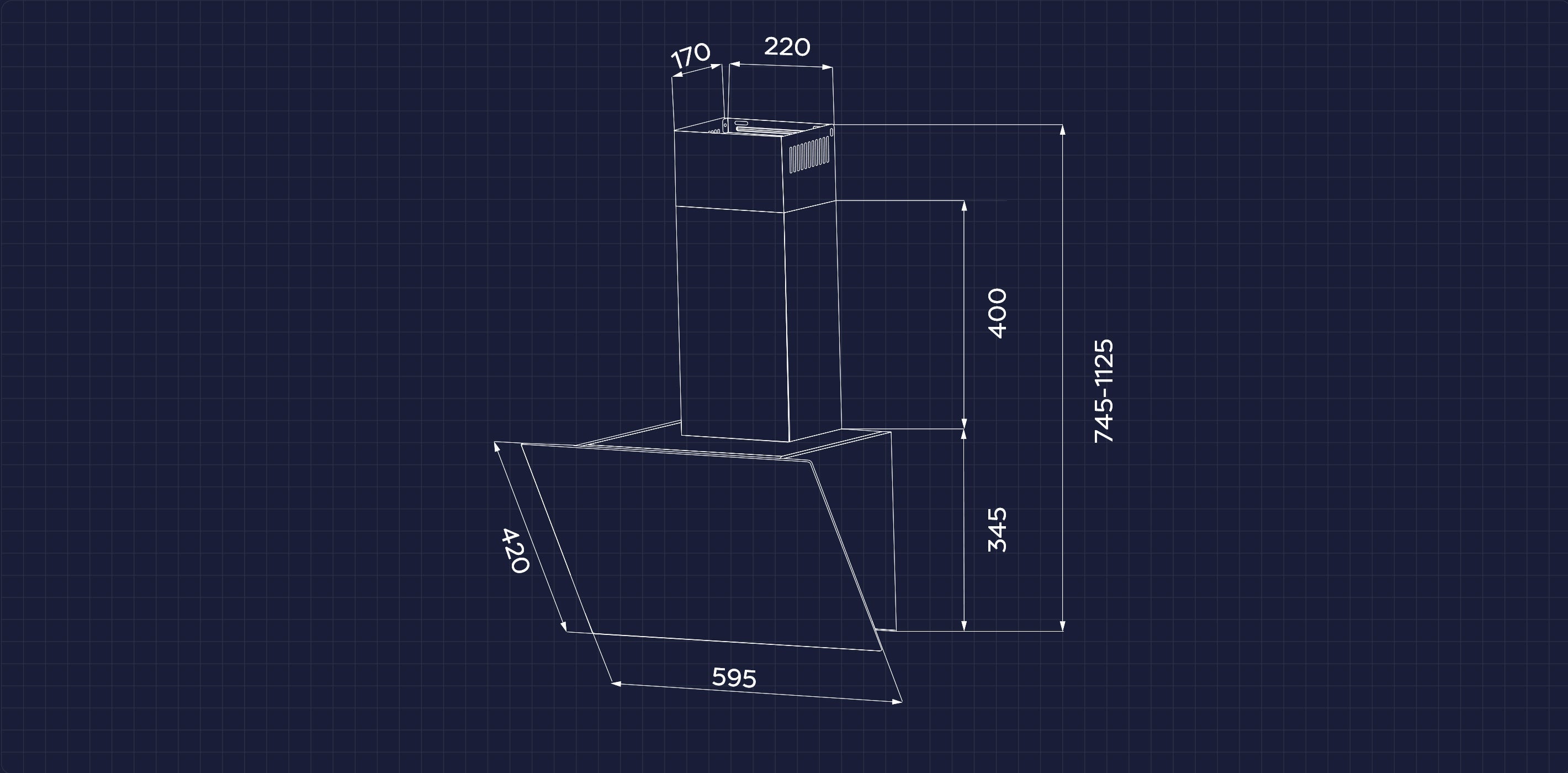 | Dunstabzugshaubenmaterial | Schwarzmalerei und Glas |