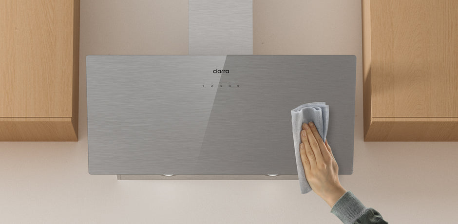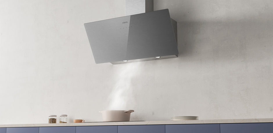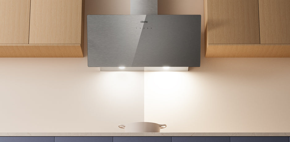 Ciarra 90cm gebürstetes Silber Glas abgewinkelt Umluft Kopffrei Dunstabzugshaube mit Touch Control A+++ CBCS9736H-S