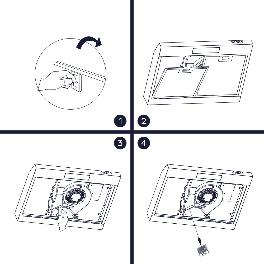 Um die beste Leistung Ihrer Dunstabzugshaube zu gewährleisten, sollten Sie den Kohlefilter je nach Nutzungshäufigkeit alle 2 bis 4 Monate austauschen.