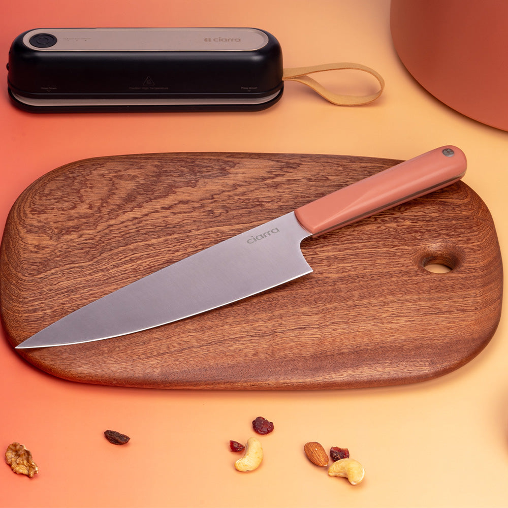 • PERFEKT AUSGEWOGENES DESIGN: Dank der Full-Tang-Konstruktion sind diese Messer auf überragende Haltbarkeit und optimale Gewichtsverteilung ausgelegt, was die Ermüdung der Hände bei längerem Gebrauch verringert. Das ausgewogene Design sorgt für ein angenehmes und kontrolliertes Gefühl und ermöglicht präzises Hacken, Schneiden und Würfeln.