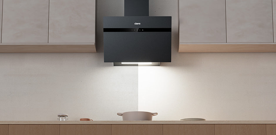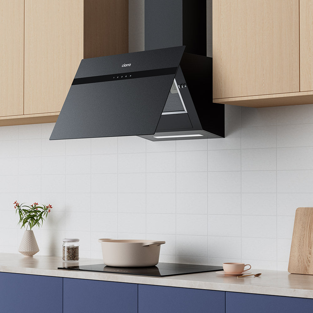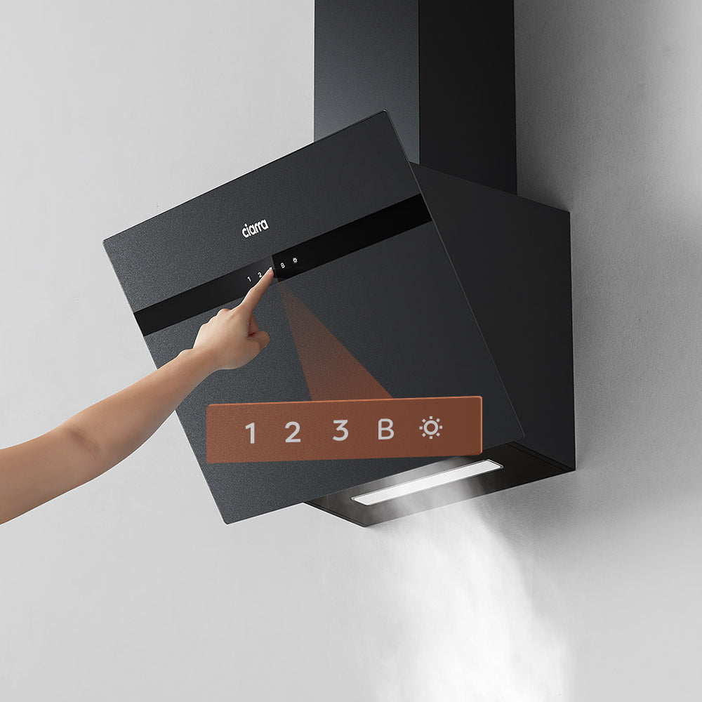 Ciarra Schwarz Kopffreie Dunstabzugshaube 60cm A+++ App/WLAN Steuerung - Schwarzglas Anti-Fingerabdrücke CBCG6736H-G