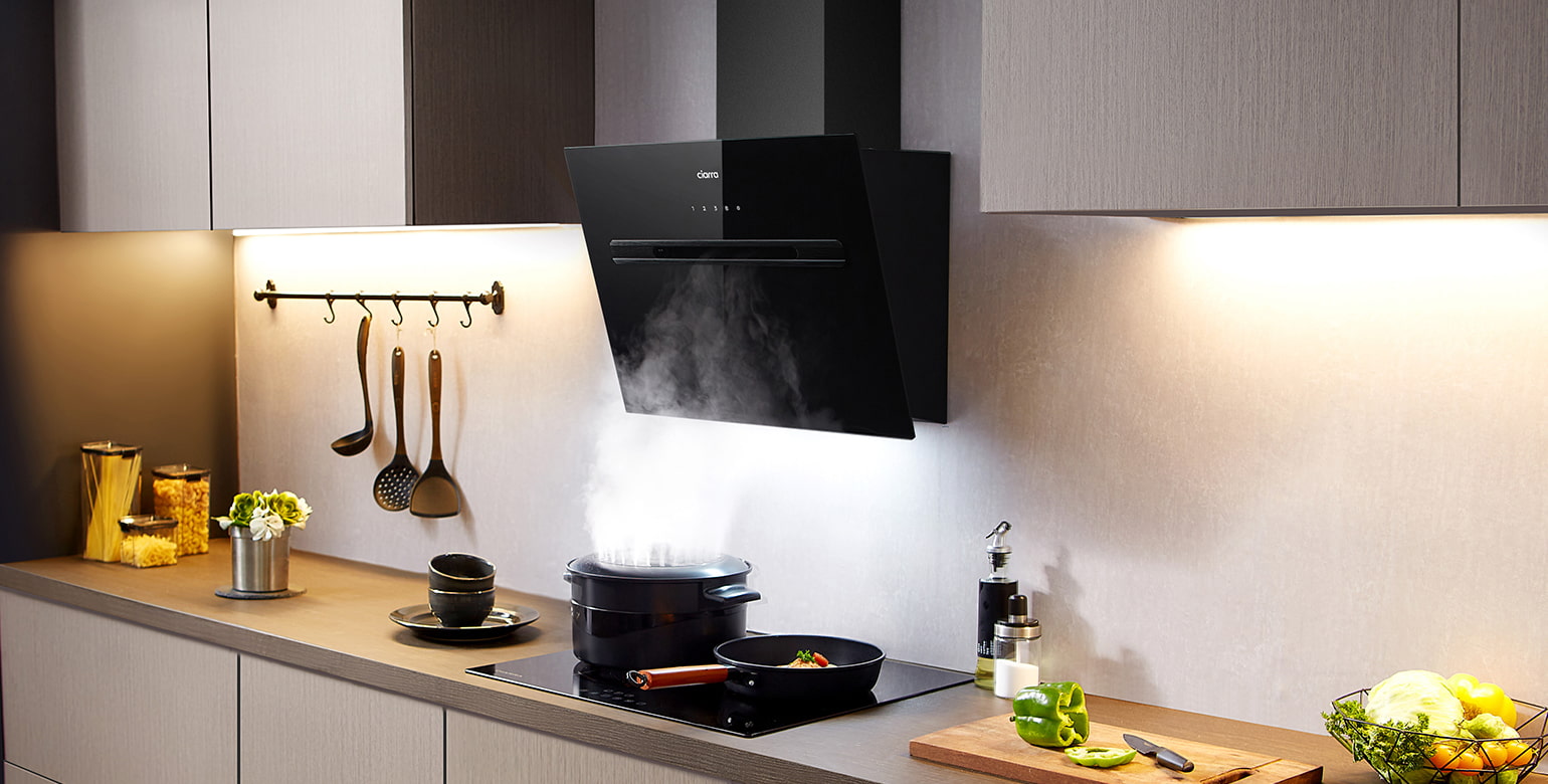 Ciarra Smart Kopffreie Schräghaube mit Wi-Fi Touch-Steuerung 60cm 700m³/h UV-Licht A+++ CBCB6736G-OW