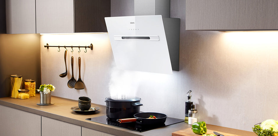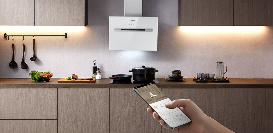 Ciarra Weiße Smart Kopffreie Schräghaube mit Wi-Fi Touch-Steuerung 60cm 700m³/h UV-Licht A+++ CBCS6736G-OW