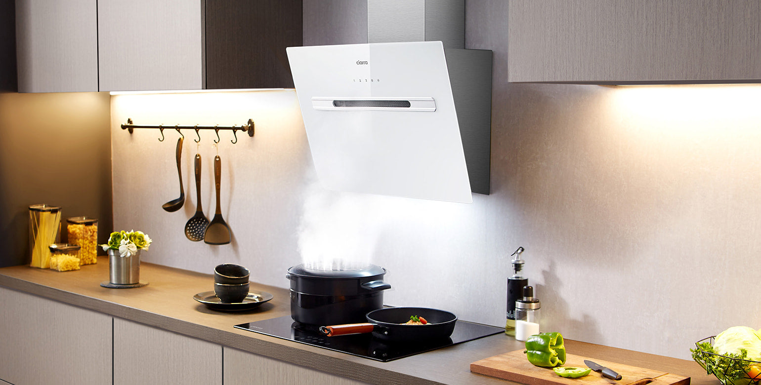 Ciarra Weiße Smart Kopffreie Schräghaube mit Wi-Fi Touch-Steuerung 60cm 700m³/h UV-Licht A+++ CBCS6736G-OW